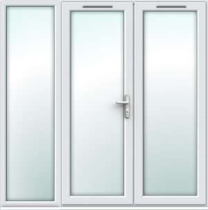 2390mm x 2090mm – Grey-on-White uPVC French Doors with Wide Side Panel